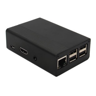 Gabinete de Aluminio de espesor 1.8 mm para Raspberry Pi 3 modelo B. Posee ranura para indicador luminoso. Color: negro.