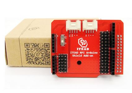 Compared to Arduino, it's hard to find the shields and electronic brick customized for Raspberry Pi. This RPI Arduino Shield Add-on has extended 32pin connector of RPI to Arduino pins, which will facilitate connections to all kinds of arduino shields. Meanwhile, two groups of electronic brick interfaces are equipped on the add-on, which are free to be connected to various electronic bricks.