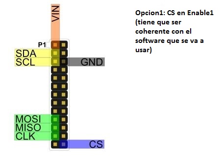 The software defines which Chip Enable will use from the Raspberry Pi's SPI HARDWARE; so be coherent with the software, when you connect the Chip Select (CS) from the module to the Raspberry Pi, because if not it will not work. For more information, see the pictures below