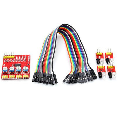 Módulo sensor IR de 4 canales. Útil para robots seguidores de línea o detectores de obstáculos.