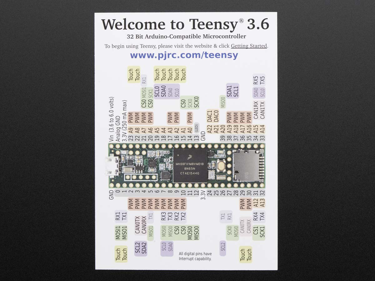 Version 3.6 features a 32 bit 180 MHz ARM Cortex-M4 processor with floating point unit. All digital and analog pins are 3.3 volts. Do not apply more than 3.3V to any signal pin. The unique specs for the 3.6 are: