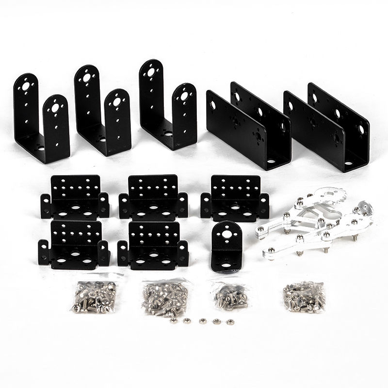 Kit brazo robótico para montaje de 6 grados de libertad. Posee además una pinza robot ya ensamblada. El producto incorpora las piezas y juegos de tornillos necesarios, excepto los servos que se pueden adquirir a través nuestra página.