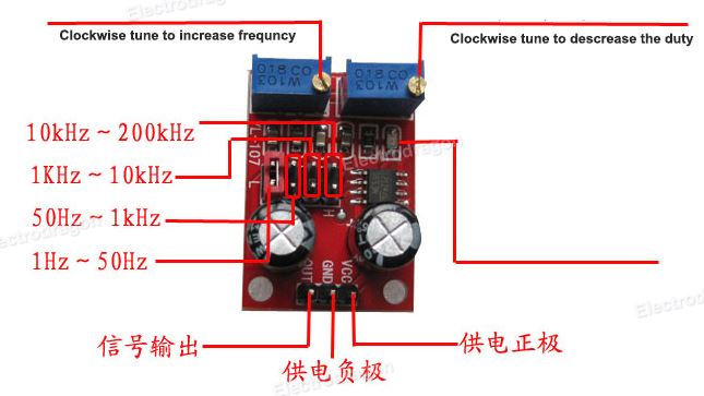 - You can fine-tune the output duty cycle, duty cycle and frequency are not adjustable, adjust the duty cycle will change the frequency
