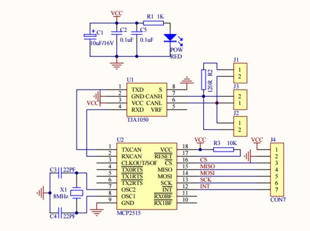 - On Board MCP2515 and TJA1050 (Replace and compatible with MCP2551)