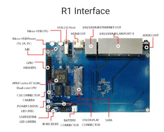 The Banana Pi R1 is a router based Banana Pi running on the same SoC as the M1 Classic Pi.