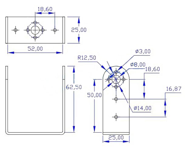 Long U-Shaped Servo Bracket PTZ Robotic Manipulator DIY Robot Mount
