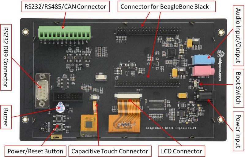 2.Touch: Five Point Capacitive touch,Covered with Amorplate Glass. Touch parameter Optimised for BeagleboneBlack.