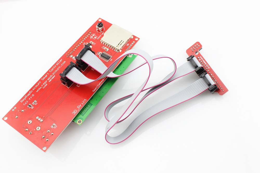 This Smart Controller contains a SD-Card reader, an rotary encoder and a 20 Character x 4 Line LCD display. You can easy connect it to your Ramps board using the "smart adapter" included. After connecting this panel to your Ramps you don't need your pc any more, the Smart Controller supplies power for your SD card. Further more, all actions like calibration, axes movements can be done by just using the rotary encoder on the Smart Controller. Print your 3D designs without PC, just with a g-code design stored on the SD card.