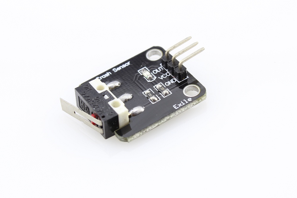 This is a Robot, model car helicopter crash or collision switch sensor module For Arduino, it normally outputs high voltage, but when the sensor is carsh something such as the wall, the on-board switch will be pressed, and the module outputs low. This module can be installed into any mobile platform to achieve collision detection function via 3P sensor cable and Arduino sensor expansion board connector.